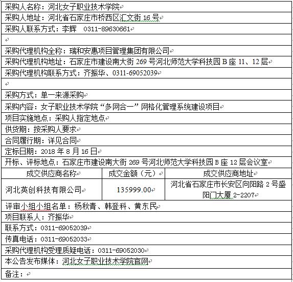 采购项目名称:女子职业技术学院“多网合一”网格化管理系统建设项目