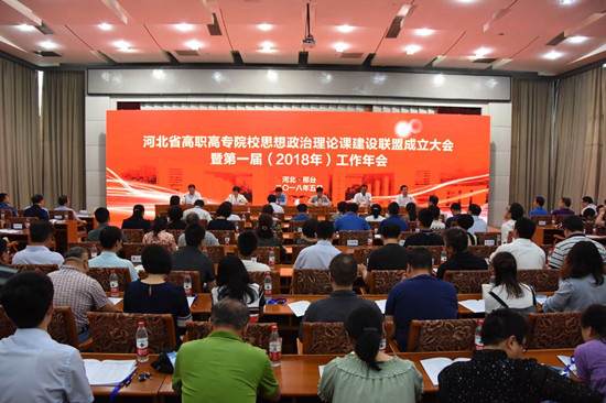 5月25日---27日,河北省高职高专院校思想政治理论课建设联盟成立大会暨第一届(2018年)工作年会在邢台职业技术学院召开。省教育厅副厅长贾海明出席会议并讲话,省教育相关领导及全省44所高职高专院校党委书记、分管领导和思政教学部主任共180余人参加了会议。我院党委书记窦新顺参加了此次会议。