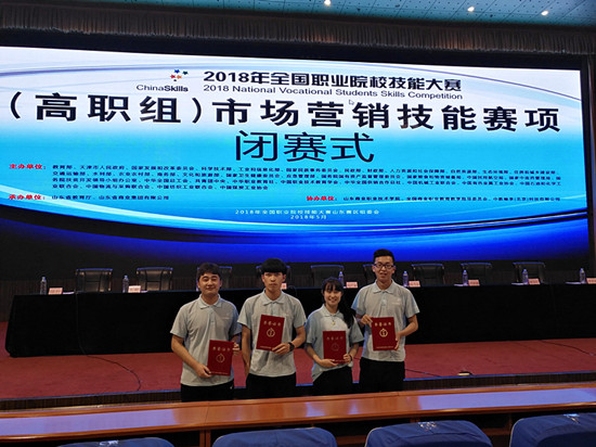 5月19日,2018年全国职业院校技能大赛(高职组)“市场营销技能”赛项在山东商业职业技术学院举行,来自全国30个省、市、自治区的84支代表队共335名选手参加了本次比赛。我院由经济管理系副主任马丽和刘金莲老师带队,孙煜泽、牛善蕴、李艳鹏、王飞四名同学组成的参赛队参加了此次比赛。