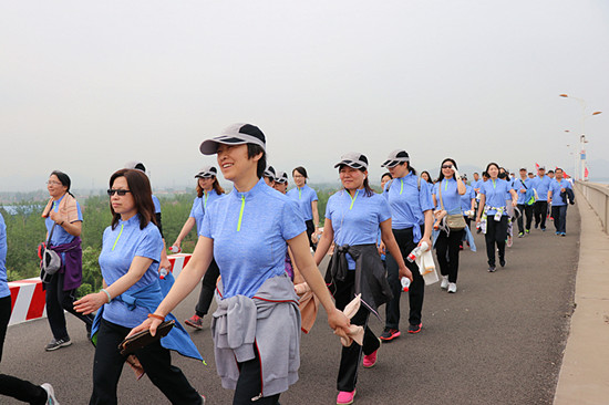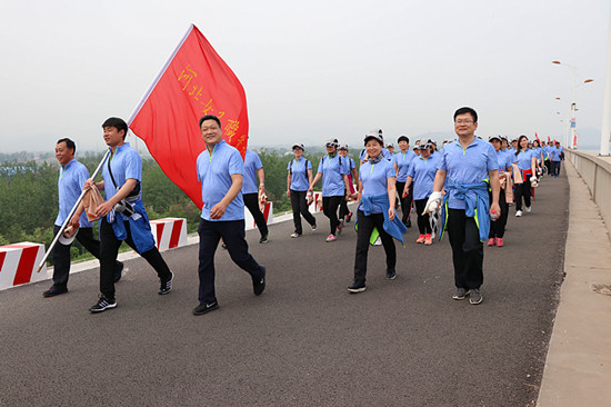 为深入贯彻落实党的十九大精神和《全民健身计划(2016-2020年)》,4月26日--27日,由河北省委省直工委主办的“奋进新时代?健康伴我行”2018年省直干部职工健步走展示活动在石家庄鹿泉区黄壁庄水库大坝举行。4月27日上午,学院党委书记窦新顺、副院长(工会主席)董海鹰、纪委书记赵志华、教务处处长赵继忠、学生处处长胡会来带领学院工会会员共86人参加了本次活动。