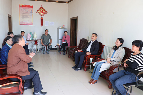 调研组首先与村委干部和学院扶贫干部进行了交流座谈。党委书记窦新顺说明了本次及时了解精准脱贫情况的调研目的;盖春瑞院长询问了工作组的生活和存在困难;驻村工作组第一书记柳韶军详细介绍了南胡解村开展脱贫工作情况以及目前还需要解决的问题;南胡解村党支部书记王淑凤高度评价了我院驻村帮扶工作组入驻以来的工作,对驻村工作组的辛劳付出和学院的鼎力支持表示衷心感谢。窦书记对工作组的工作给予了充分肯定,并提出了建议和希望。窦书记指出,我院在南胡解村的扶贫攻坚工作取得了阶段性成果,积累了成功经验,驻村干部克服个人困难,积极投入工作,开展调研主动深入,对村里的发展建设情况了如指掌,工作思路清晰。窦书记表示,学院党委将把精准脱贫工作作为重中之重,发挥学院教育资源优势,结合“河北省巾帼精准扶贫十百千培训工程”,免费对南胡解村妇女进行技术培训,切实增强农村贫困妇女脱贫致富和自我发展的能力。希望驻村干部严格遵守省委关于精准脱贫工作的各项纪律要求,积极想办法、找路子、谋发展,形成合力,扎实推进各项扶贫项目,为南胡解村的发展和群众致富创造良好条件。