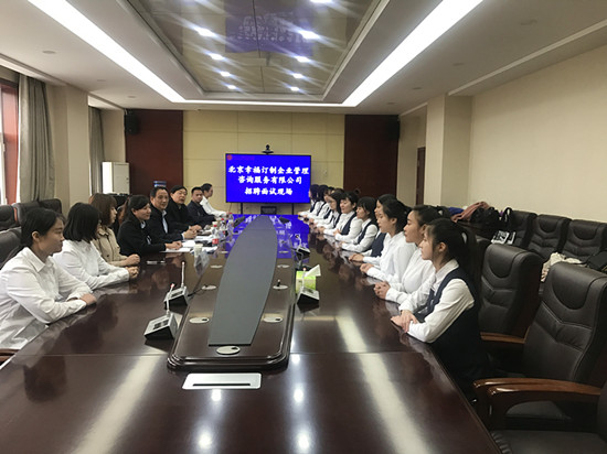 4月4日上午,经济管理系财会专业群教师与企方代表举行了校企人才对接培养交流会,双方就学生专业素质与能力培养等问题进行了深入交流研讨。北京幸福订制集团公司对经济管理系的15名同学进行了笔试和面试,最终选定了9名同学。清明节后9名同学将奔赴企业的实习工作岗位。