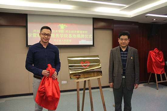 2018年3月28日,我院与河北省人民医院共建大学生志愿服务基地揭牌仪式在省人民医院举行。省人民医院党委书记彭彦辉、河北经济管理学校副校长张渺、我院护理系团总支书记肖雷参加了揭牌仪式。揭牌仪式由省人民医院行风办主任高颖宏主持。