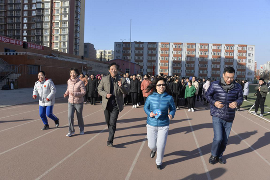 为进一步贯彻落实《河北省人民政府办公厅关于强化学校体育促进学生身心健康全面发展的实施意见》精神,进一步增强学生身体素质和意志品质。1月9日下午,我院在南校区运动场举行了2018年“阳光体育活动一小时”冬季长跑活动启动仪式,学院各系主任参加了启动仪式活动,启动仪式由基础教学部主任董彦菊主持。