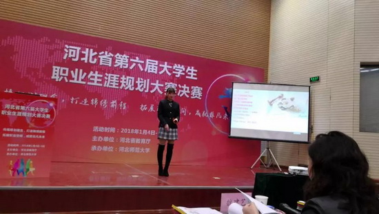2018年1月4日--5日,由河北省教育厅主办的第六届河北省职业生涯规划大赛全省决赛在河北师范大学举行。我院2015级学前教育专业学生冉硕获得二等奖、2015级艺术设计专业学生徐上获得三等奖;陈娜、张浩、杜梦菲、马占松、康江卫、沈睿媛获得优秀指导教师荣誉称号;我院获得优秀组织奖。河北省教育考试院院长杨勇、省教育厅大学生就业创业办公室主任姬振旗等领导出席颁奖仪式。