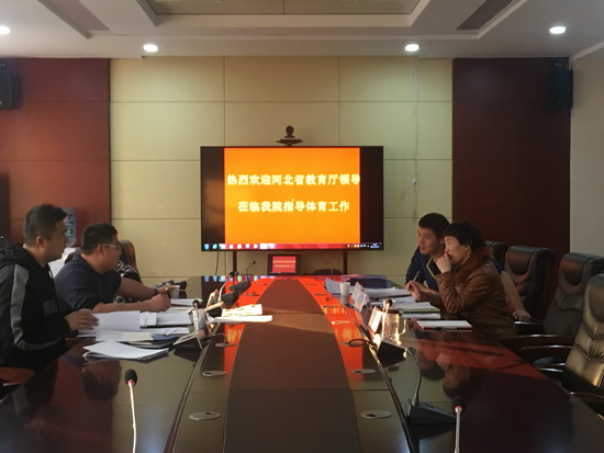 12月27日,河北省教育厅督导检查组宋淑珍、刘彬等一行四人莅临我院,对我院《高等学校体育工作基本标准》实施情况进行督导检查。基础教学部主任董彦菊、副主任宋冬梅及部分体育教师参加了在我院行政楼201会议室召开的体育工作督导检查座谈会。
