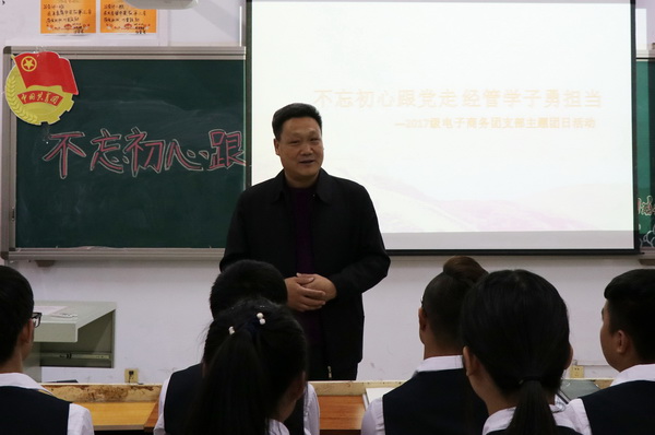 窦书记在观摩各系团总支的精品团日活动期间,分别与各班同学进行了亲切的交谈,并对同学们寄予了深切期望。窦书记结合自身的教育经历,向同学们阐述了学院“德育为先、育人为本”的教育理念,鼓励同学们努力做好以下四点:一要养成良好的生活习惯,加强体育运动,增强身体素质;二要提高综合素质,树立有爱心、善合作、敢创新的进取精神;三要提高运用信息化的能力,善于运用新媒体工作和学习;四要培养吃苦耐劳的精神,将淑女风范和中华女性传统美德相结合,争做新时代“十度优品”女性。窦书记希望全体同学充分利用大学三年的宝贵时间,熟练掌握专业技能,自觉提高综合素质,把“学懂、弄通、做实”贯穿于党的十九大学习宣传活动,把个人发展同国家命运结合起来,努力成为“有理想、有本领、有担当”社会主义接班人。
