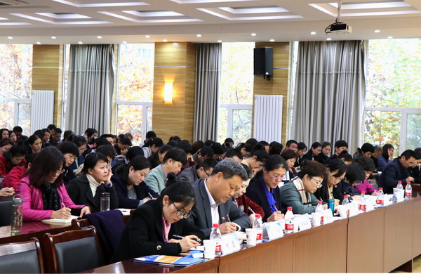 为进一步学习宣传贯彻党的十九大精神,根据全国妇联统一部署,全国妇联副主席、书记处书记、党组成员谭琳带队赴我省向妇联干部和农村社区妇女群众宣传宣讲党的十九大精神。11月8日下午,学习贯彻党的十九大精神宣讲报告会在我院新思维交流中心举行,谭琳副主席莅临我院作宣讲报告。全国妇联权益部部长高莎薇、权益部信访处处长郭晔、权益部处长于晓琼、领导同志秘书何蓉,河北省妇联主席、党组书记贾玉英、副主席王冬梅,学院党委书记窦新顺、院长盖春瑞出席报告会;省、市妇联机关干部、学院师生代表共200余人聆听了报告。会议由贾玉英主席主持。
