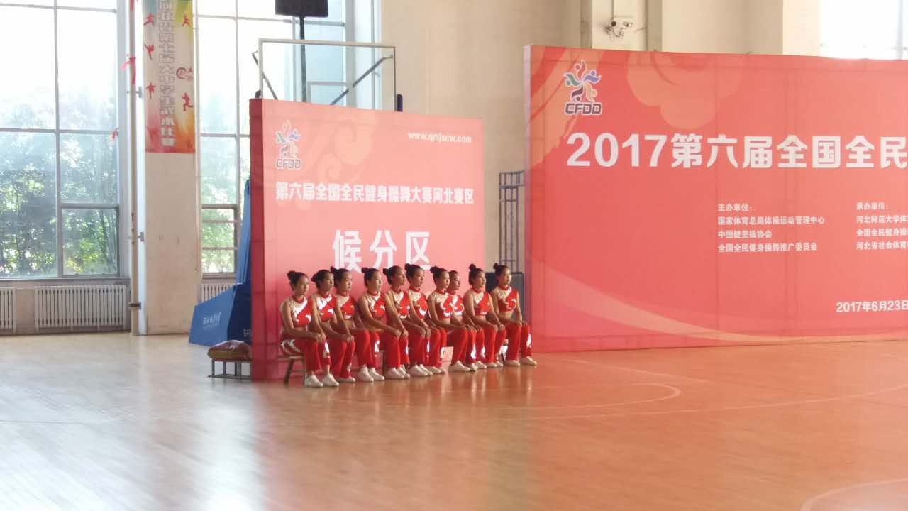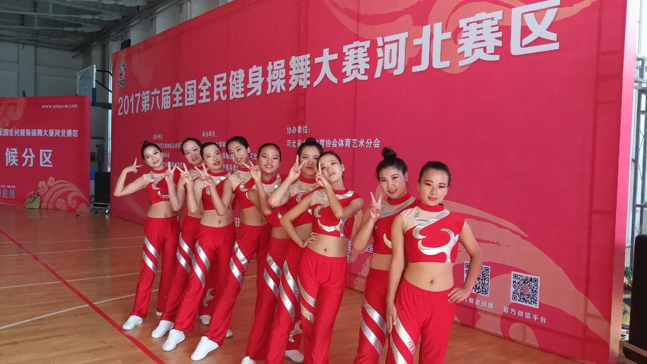 6月23--25日,由国家体育总局体操运动管理中心、中国健美操协会、全国全民健身操舞推广委员会主办的2017全国全民健身操舞大赛河北赛区决赛在河北师范大学举行。我院基础教学部主任董彦菊、副主任宋冬梅、体育教师白斌飞带领学前教育系郭雅婷、曹万香、于迎春等11名学生组成的代表队参加了比赛。经过激烈角逐,我院代表队从近百支参赛队中脱颖而出,获得有氧健身操(自选)大学普通院系组一等奖、大众锻炼标准2级一等奖的好成绩,并获得代表河北省参加9月份在青岛举行的“2017年第六届全国全民健身操舞大赛总决赛”的资格。
