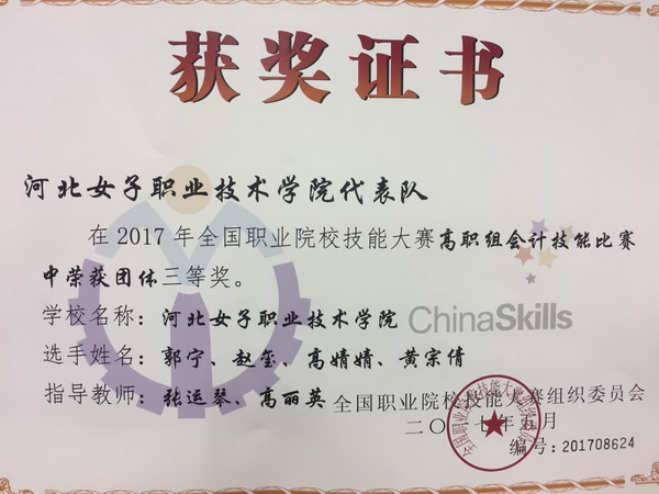 自2104年以来,我院代表队连续4年保持着河北省参加全国会计技能大赛的最好成绩,彰显了我院财会专业在河北省高职教育界的品牌实力。通过参加国赛,展示了学院以赛促教、以赛促学、以赛促改的教学成果,展现了师生过硬的专业技能和良好的专业素养,促进了学院与全国兄弟院校间的交流学习,对进一步推进专业建设与教学改革、提升人才培养质量具有深远意义。
