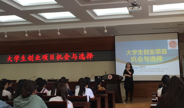 王胜会女士向我院女大学生阐述了她对创业的理解,并结合自身的创业经历、多年创业辅导的经验,以调查数据的形式,为同学们介绍了国内外大学生创新创业的现状、大学生创业项目的选择、90后大学生创业项目实例以及创业的评估体系等内容,使同学们增长了创业知识,激发了创业热情。王老师激情而风趣的讲座,获得了阵阵热烈掌声。