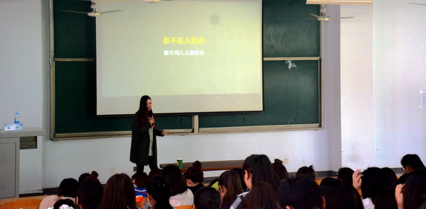 4月18日下午,我院创新创业学院、女性教育研究所联合学生处共同举办了大学生创业与职业规划主题双讲座。北京弈博明道公司创始人、北大EMBA总裁实战研修班特聘讲师、人力资源和社会保障部国家职业技能培训鉴定师王胜会女士和90后新锐女作家、鱼群心智成长营创始人鱼樵分别在我院新思维交流中心、图书馆208阶梯教室为我院学生做了题为《大学生创业项目机会与选择》、《人人都能活成自己想要的样子——心智成长的力量》专题讲座。来自学院五个系部的500余名学生倾听了讲座。