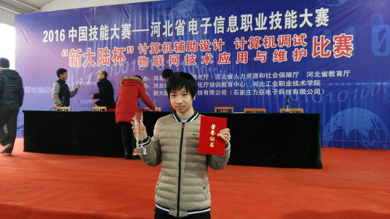 12月10日-11日,由河北省工业和信息化厅、河北省人力资源社会保障厅、河北省教育厅联合举办的“2016年中国技能大奖赛——河北省电子信息职业技能大赛”在河北工业职业技术学院举行,共有来自全省高校和企业的400多名选手参赛,高手云集,竞争十分激烈。经过激烈角逐,我院现代服务系刘加袁同学在高亚平老师指导下以优异成绩获得计算机调试竞赛项目一等奖。