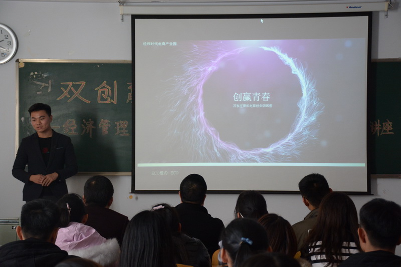 11月15日下午,经济管理系邀请石家庄聚赢电子商务产业园徐立峰总经理、王志强总经理,石家庄文竹网络科技有限公司创始人冯韦邺来校做了“双创赢未来,电商新启航”专题讲座。参加此次讲座的有经济管理系副主任马丽、团总支书记陈丽敏、商贸专业群全体教师、辅导员及2015级、2016级全体学生。
