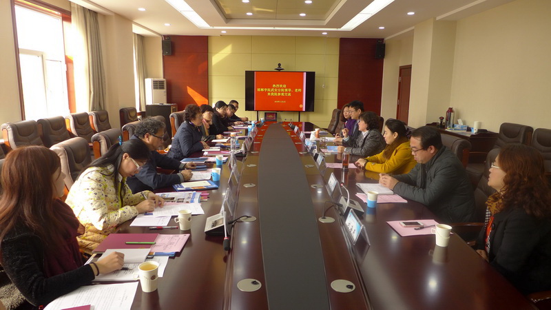 11月2日,邯郸学院武安分院党委书记、院长常如敏,副院长刘陆冰,教务处处长秦彦梅,学前教育系主任孔武法等一行11人到我院考察学习。双方在行政楼201会议室召开座谈会,就学前教育专业体系建设、人才培养计划制订等问题进行交流研讨,我院院长盖春瑞,副院长徐爱新,教务处处长赵继忠、副处长安月辉,学前教育系主任黄士良、副主任刘海燕出席了会议。