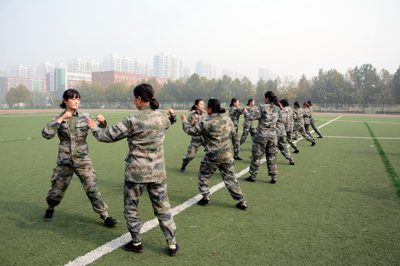 针对前段时间全国多地发生的女学生失联事件,为增强女大学生的安全防范能力,弘扬我院积极向上的精神面貌,10月18日,学生处邀请石家庄机械化步兵学院的教官们来到我院,教授国旗护卫队的同学们女子防身术并拍摄学院宣传片。
