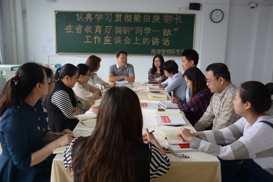 根据省委教育工委《关于认真学习贯彻梁田庚部长在省教育厅调研“两学一做”工作座谈会上的讲话的通知》的文件精神和《学院“两学一做”学习教育实施方案》的要求,5月6日下午,我院各党支部积极开展了“两学一做”专题学习活动。学院党委书记窦新顺、院长盖春瑞及领导班子成员分别作为支部成员参加了学习活动。