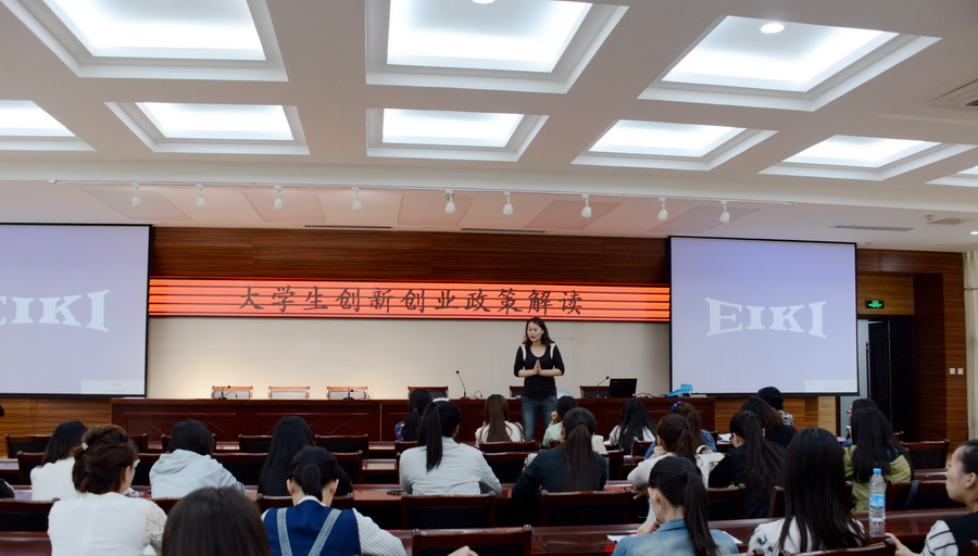 王敬副主任结合她自身的职业经历,告诉同学们创业要敢于尝试,创业者要学会推销自己、展现自己、表达自己,并培养专注、坚持的特质。随后,她给同学们发放了《石家庄市高校毕业生就业创业指南》,并就高校毕业生创业流程与注意事项、创业补贴资金、小额担保贴息贷款、创业孵化园入驻等多个方面,解读了政府对大学生创业的政策支持。
