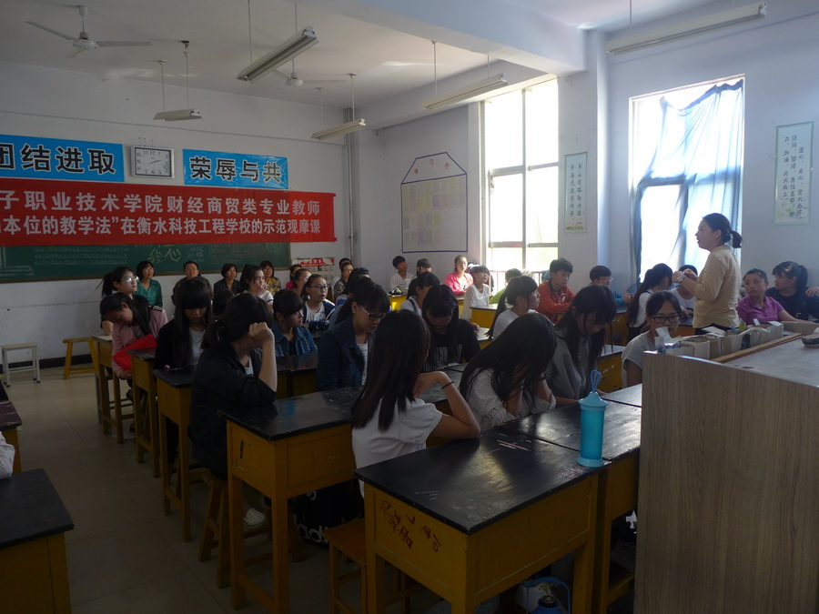 严李莉老师为来自衡水科技工程学校、衡水职教中心的近30余位教师做了“以学生为本位的教学法策略”的经验分享;郑丹丹老师为我院会计预科班的50名财会专业学生和15位教师分别上了一堂精彩纷呈的ERP示范观摩课;胡会来处长与李桂荣主任还借此机会还拜访了衡水职教中心校长岳国武,就中高职衔接合作达成了初步意向。