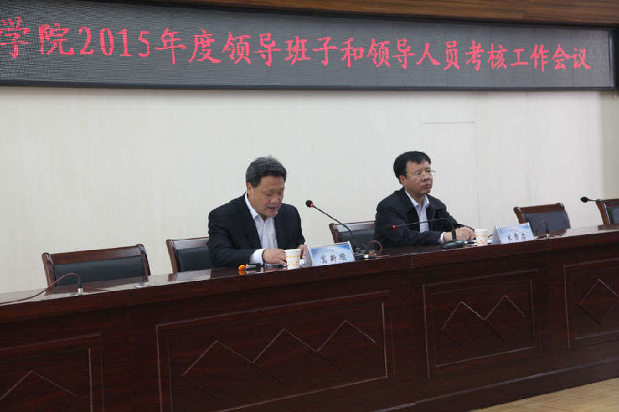 党委书记窦新顺主持会议并代表学院领导班子作2015年度工作述职。窦书记从不断提升党建科学化水平,牢牢把握办学方向;全面从严治党,加强党风廉政建设;聚焦重点工作,不断实现学院各项事业新的发展;积极破解难题,争取突破制约学院发展瓶颈;优化作风提质增效,全面助力学院跨越发展五个方面回顾了2015年度学院改革建设进展和成绩,查找了工作中存在的问题和不足,提出了2016年重点工作。