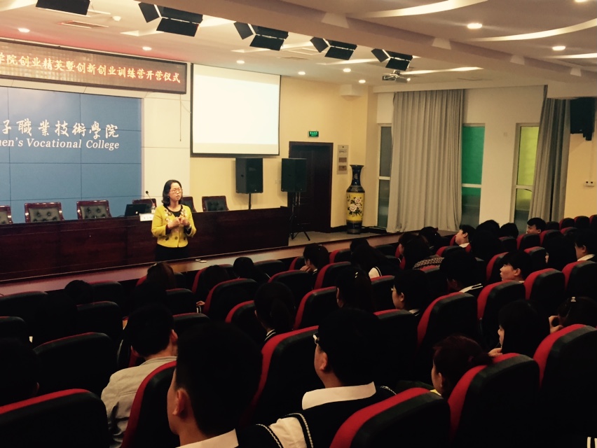 开营仪式后,训练营举办了“女企业家面对面”主题创业沙龙,新道科技股份有限公司河北分公司总经理王立朋女士就创业项目的开发和设计、创业团队的建设、商业模式的选择、优秀创业项目案例等内容,与创新创业训练营的学员进行了精彩分享,并与学员对部分创业项目进行了沟通交流。
