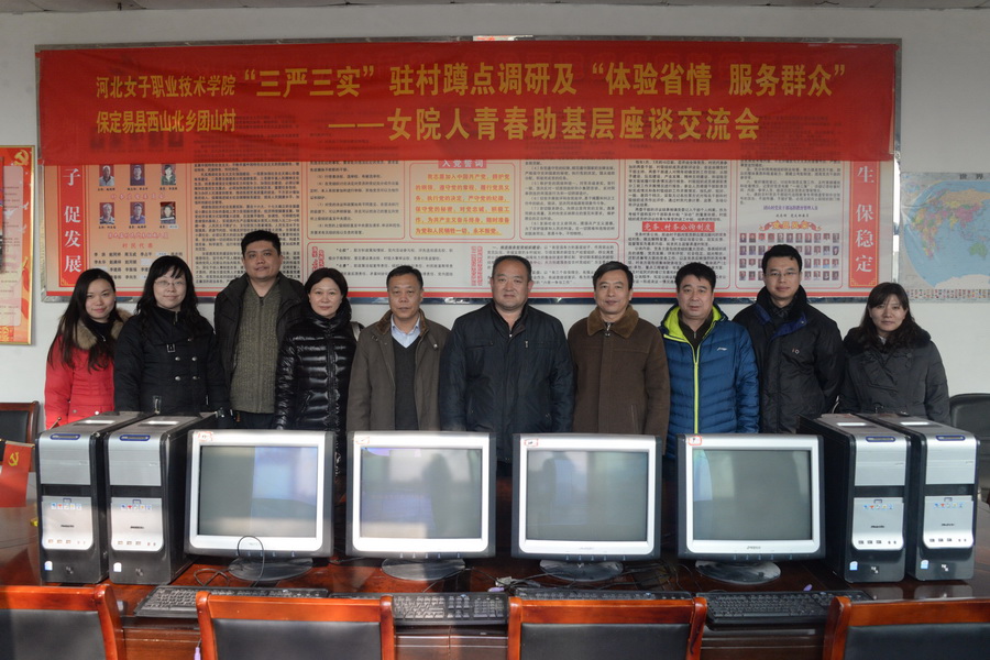 为深入学习贯彻党的十八大、十八届三中、四中、五中全会、省委八届十二次全会和习近平总书记系列重要讲话精神,进一步推进“善行河北,立德树人”宣传教育活动,积极引导我院师生投身社会实践,多层次体验省情、多形式服务群众、多途径创新创业,结合省委宣传部《关于开展2016年寒假大学生和青年教师“体验省情·服务群众”“互联网+”主题实践活动的通知》要求,我院师生社会实践小分队一行15人于2016年1月28日由学院党委副书记柳韶军带队,赴学院帮扶驻村点---河北省易县西山北乡团山村开展了“体验省情”蹲点调研活动。