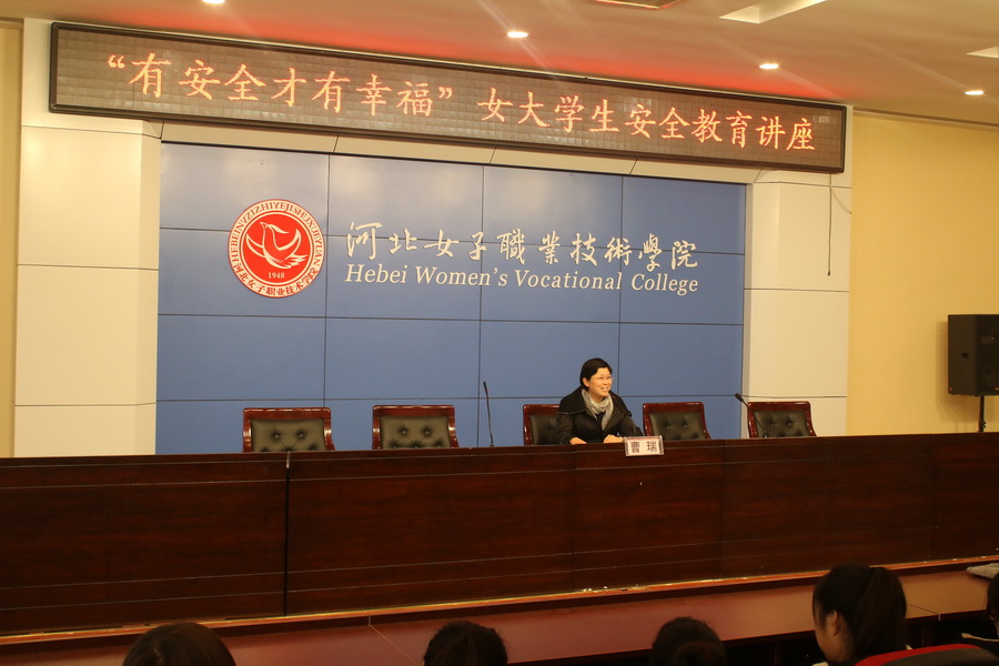 为加强学生的法律意识、法制观念和安全防范意识,12月29日,学院团委在图书馆报告厅组织举办了“有安全才有幸福”法律知识讲座。本次讲座邀请到了河北女子监狱教育专家曹瑞女士主讲,全校约三百余名学生参加了讲座。
