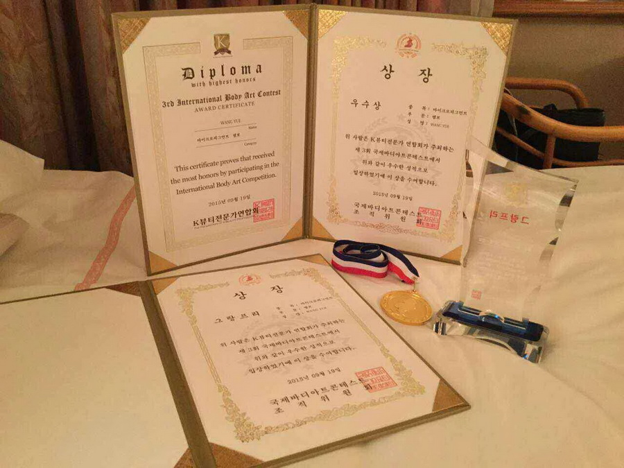 9月15日—9月19日,我院艺术设计系人物形象专业任课教师、人物形象设计工作室负责人王越老师应邀参加了在韩国首尔举办的国际人体艺术大赛。经过现场激烈的角逐,王越老师在800名参赛者中脱颖而出,获得了此次大赛纹绣组的最高奖项,充分体现了我院教师高超的专业水平。