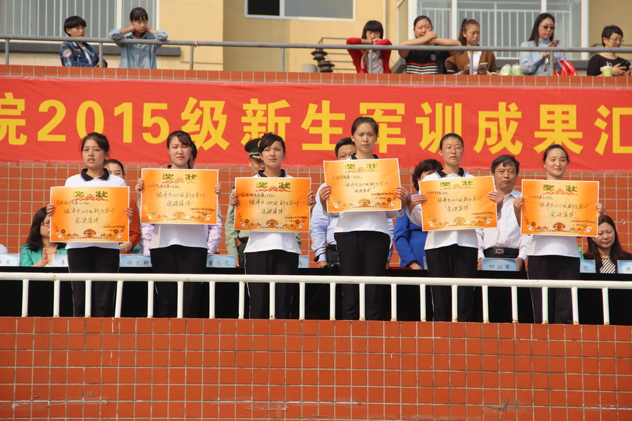 汇报表演结束后,我院对今年军训工作涌现的先进集体和个人进行了表彰,共评选出6个先进集体、51个优秀标兵和5名优秀教官。学院领导和部队首长为受表彰的集体和个人颁发了奖状、证书。随后,盖春瑞院长代表学院向承训部队赠送锦旗,感谢部队对我院军训工作的大力支持。