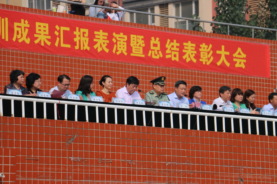 9月18日上午,我院在运动场隆重举行了2015级新生军训汇报表演暨总结表彰大会。学院党委书记窦新顺、院长盖春瑞、石家庄机械化步兵学院院务部勤务保障营教导员张鹏、学院纪委书记柳韶军、副院长徐爱新及各部门负责人出席了大会。大会由学院副院长董海鹰主持。