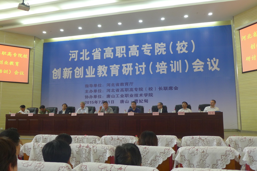 2015年7月21日,学院党委书记窦新顺、院长盖春瑞、副院长徐爱新、经济管理系主任李桂荣一行四人赴唐山参加了河北省高职高专(院)校创新创业教育研讨(培训)会议。本次会议由河北省教育厅指导,河北省高职高专(院)校长联席会主办,唐山工业职业技术学院协办。教育部职成司高职高专处处长林宇、河北省教育厅正厅级巡视员张益禄、河北省教育厅高教处处长朱智国、唐山市教育局局长刘绍辉、曹妃甸区副区长刘子阳等领导和嘉宾出席会议,会议由河北省高职高专校长联席会主席胡振文主持。