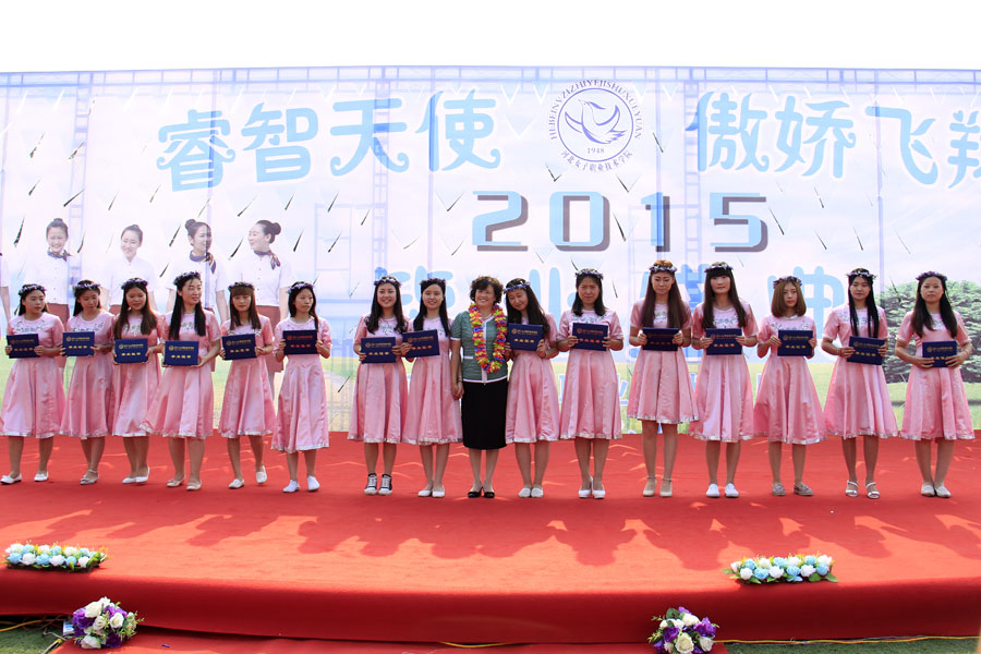 盖春瑞院长向2015届毕业生授予毕业证书和幸福花环