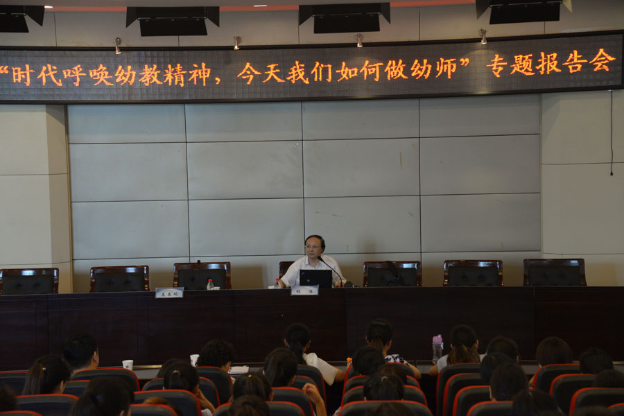 6月10日下午,幸福泉儿童发展集团创始人、首席专家,幸福泉儿童发展与教育科学研究院院长程淮教授应邀为我院师生做了题为“时代呼唤新幼教精神——今天我们如何做幼师”的专题报告。报告会由学院院长盖春瑞主持,学前教育系专业教师及全体学生参加了报告会。