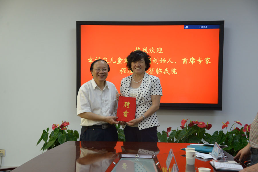 会后,程教授在盖春瑞院长陪同下参观了学前教育系国家级实训基地,并在学院行政楼会议室就儿童早期教育事业发展的顶层设计、体系建构以及学前教育系工作建设等问题与我院领导、学前系教师进行了深入交流与探讨。盖春瑞院长为程淮教授颁发了聘书,聘请程教授任学院专家委员会委员。