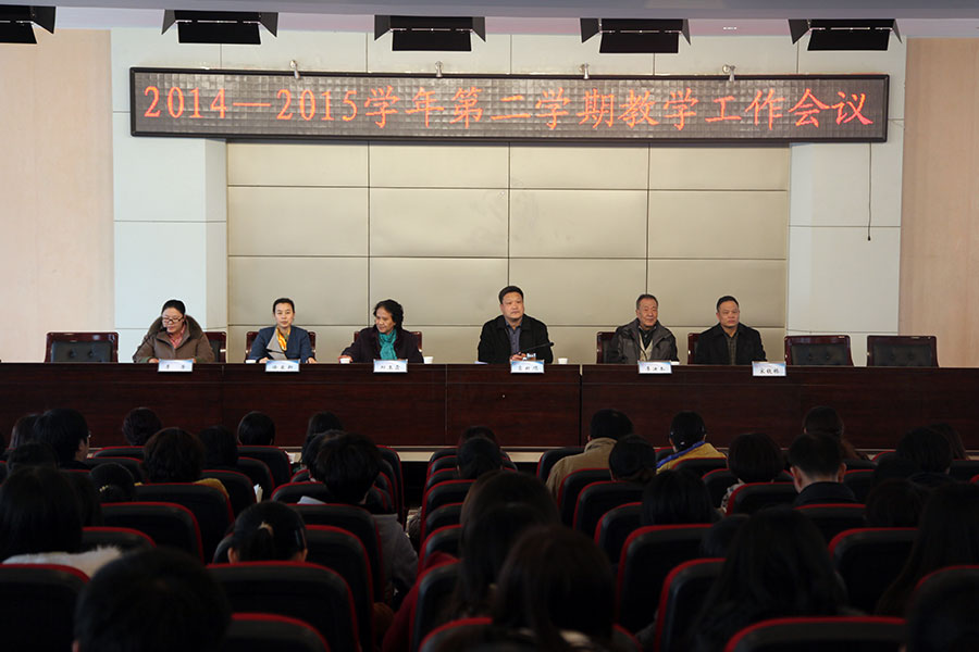窦新顺书记在讲话中充分肯定了2014年我院完成的突破性工作,分析了学院2015年教学工作所面临的机遇与挑战,并就落实2015年度学院教学工作提出了要求。一是树立以学生为中心、以教学为中心、以教师为中心的理念;二是加强队伍建设,尤其是教师队伍建设;三是全体师生不断学习,建立学习型校园;四是贯彻落实好本次会议精神。