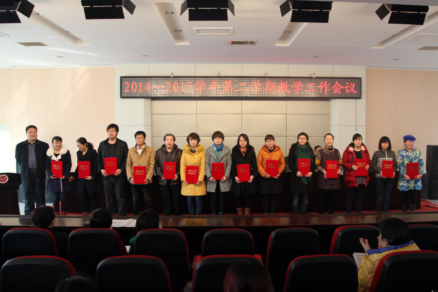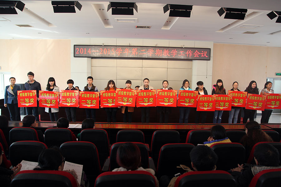 会议首先由教学督导专家代表邱玉霞教授通报上学期教学督导情况,教务处宣布2014-2015学年第一学期教学督导奖励名单,并为获奖班级、教师颁奖。