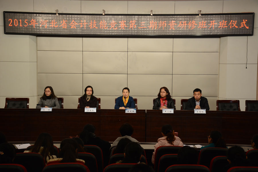 在为期3天的培训中,用友新道科技有限公司河北分公司技术总监秦黎刚为全省会计专业教师讲解了2015年会计国赛信息化竞赛平台软件的操作,介绍了企业模拟经营沙盘赛项考点;国赛命题组专家李晓亮作了2015年国赛信息化试题解析和国赛会计手工竞赛平台软件的培训;南京无忧公司的王志华为向老师们介绍了2015年会计从业资格证的考试平台及命题思路;我院创业社团作了创新创业项目介绍。