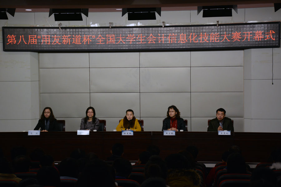 2014年11月29日,由工业和信息化部人才交流中心主办,用友新道科技有限公司与我院共同承办的“寻找中国管理与信息化三好生”暨第八届“用友新道杯”全国大学生会计信息化技能大赛在我院成功举办。学院副院长徐爱新、经济管理系主任李桂荣,用友新道科技有限公司河北分公司总经理王立朋、服务总监秦黎刚以及来自全省15所高职高专和18所本科参赛院校的会计专业领导、指导教师和参赛学生共280余人参加了开幕式。