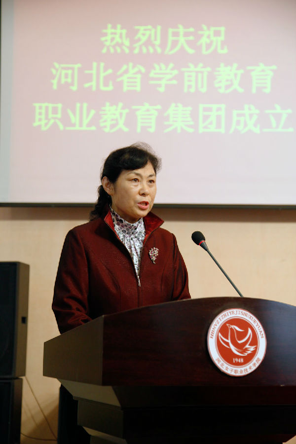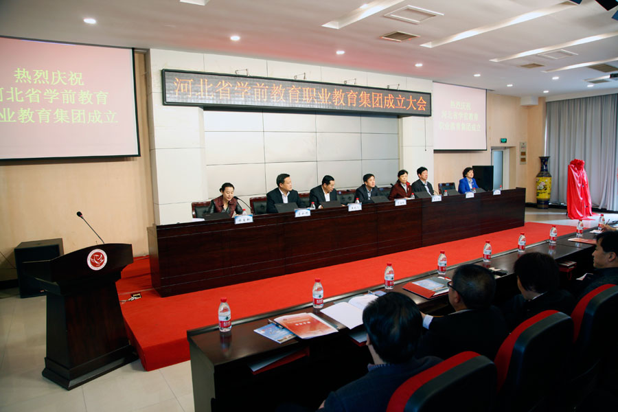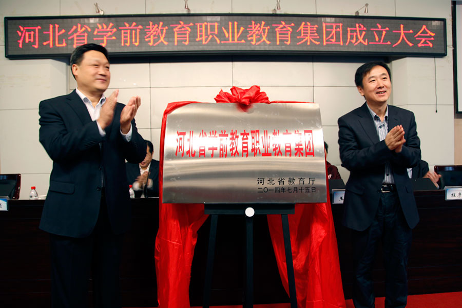 2014年10月22日,由我院牵头组建的“河北省学前教育职教集团”成立大会在学院报告厅隆重举行。省教育厅副厅长贾海明、省妇联副主席王冬梅、学院党委书记窦新顺、院长盖春瑞出席并分别讲话。省教育厅职教处处长王晓飞宣读了关于组建河北省学前教育职教集团的批复。省教育厅副厅长贾海明、学院党委书记窦新顺共同为“河北省学前教育职教集团”揭牌。学院副院长徐爱新主持大会。