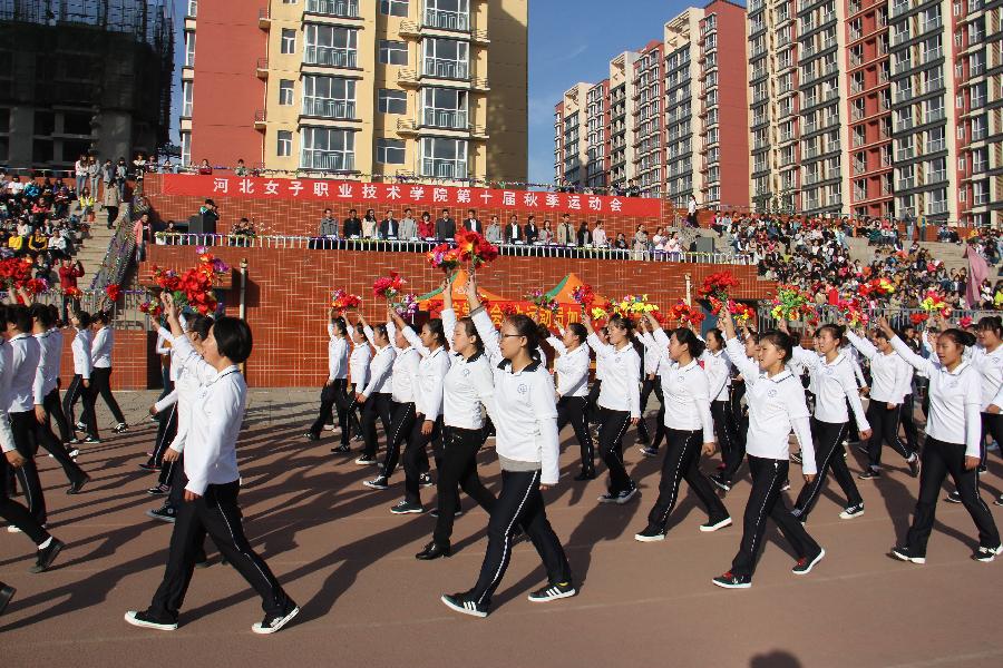 窦新顺书记致开幕辞。他首先代表学院领导对本次运动会的召开表示祝贺。他指出:发展体育运动,是贯彻科教兴国战略、全面推进素质教育、落实《全民健身计划纲要》的具体行动,是丰富校园文化生活、加强精神文明建设、培养德、智、体、美全面发展的高素质女性人才的重要举措。他还对学院近几年取得的省级示范校、全国三八红旗集体等办学成绩进行了总结和概括。窦书记进一步指出,2014年,我院学子河北省第十八届大运会上,荣获女子5000米、110米栏两个项目的银牌,1500米的铜牌,取得了有参赛记录以来的最好成绩,田径代表队还荣获了“道德风尚奖”,为学院争得了荣誉。希望今天的秋运会继续发扬我院学子在河北省第十八届大运会的精神,用运动竞技来展示我们的昂扬斗志和拼搏精神。