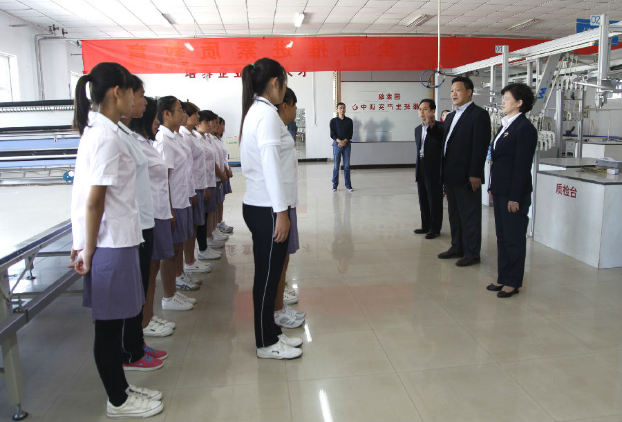 2014年9月18日,学院党委书记窦新顺、院长盖春瑞和“暖心圆梦”服装专业助学行动赞助企业——致青春教育投资有限公司董事长李庆芳先生到艺术设计系服装设计专业国家级实训基地看望了2014年度“暖心圆梦”助学班的全体学生。