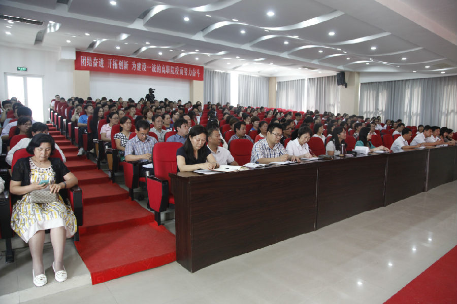 会上,盖院长做了《总结经验 明确目标 下大力气 攻坚克难 确保2014-2015学年各项工作再上新台阶》的讲话,对学院上学年工作进行总结,并安排部署新学年工作。盖院长在讲话中指出,2013-2014学年,在省妇联、省教育厅等上级部门的正确领导和大力支持下,学院深入贯彻落实全国职教工作会议和全省教育工作会议精神,围绕“省级女性教育示范校建设”和第一届党代会形成的发展共识,紧依靠广大师生员工,在党的群众路线教育实践活动、改善民生、教育教学、学生管理、后勤服务、校园文化建设方面都取得了重要成就。被省教育厅确立为“重点建设的示范性高职院校”,被全国妇联授予“全国三八红旗集体”称号;获准成立“河北省学前教育职业教育集团”,成为我省学前教育领域的龙头等等。盖院长在讲话中还强调,要充分利用全国职业教育工作会议、我省出台《关于加快发展现代职业教育的实施意见》的有利时机,进一步厘清办学思路,凝聚发展共识,明确发展目标,突出发展特色,注重人本、秩序和责任意识,牢固树立以学生为本、以教师为本的思想,扎扎实实、一步一步把学院办成能与省市职业名校(全国示范校)相比肩的一流名校。谈到新学年工作,盖院长指出,新学年,学院要认真学习贯彻国务院全国职业教育工作会议和习近平总书记重要批示精神,认真落实我省《关于加快发展现代职业教育的实施意见》、《学院事业发展规划(2012-2015)》及学院第一次党代会工作部署,围绕“省级女性教育示范校”建设,一要加强思想宣传工作,竖起女性教育示范的大旗;二要深化专业及课程改革,优化人才培养计划,深入推进教学改革;三要做好“暖心?圆梦”服装班和“思利及人助学圆梦护理班”两个助学项目,深入做好学生工作,继续拓展招生就业新途径;四要拓展办学渠道,强化与本科院校战略合作关系,大力开展多元化办学;五要导入5S质量管理标准体系,加强软硬件及信息化建设,全面改善校园形象。