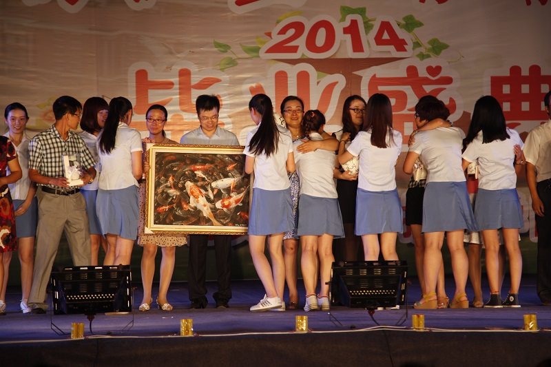 最后,窦新顺书记深情寄语2014届毕业生,窦书记首先代表学院向毕业生致以最诚挚的祝福和最热烈的祝贺!他指出,本届毕业生既是学院发展的建设者、见证者,也是学院越来越好的受益者。窦书记向大家提出四点希望,作为临别赠言,相互勉励。第一,要“心中有梦”。走进社会,大家面临着新工作、新岗位、新角色、新环境,工作起来可能不是一帆风顺、事事随心,但只要坚定这种理想信念,就能在逆境中不被困难和挫折压倒,就能积聚攻坚克难、迎难而进的潜力和动力。立足岗位奉献社会,满怀激情成就梦想,在人生的每一个关键时刻,创造出属于自己的精彩人生。第二,要终身学习。学校知识是基础、是专业基本技能。大家要树立终身学习的理念,肯学习、善学习、会学习,下长功夫、下苦功夫、下真功夫,不断更新和拓展自己的知识技能体系,练就过硬本领、锤炼高尚品格,在实现中国梦的生动实践中放飞青春梦想。第三,要从小事做起。“做得了小事,才能成得了大器”。要从一点一滴做起、从小事做起、从自身做起,把每一次实践看作是对自己能力的提升和磨练。要发挥学院的特色、优势,细心、耐心、精心,扮演好为人妻、为人母、好员工、好公民的家庭社会角色,时时刻刻展现知识扎实、技能娴熟、知性高雅的我院学子形象。第四,要不怕吃亏和吃苦。刚刚走入社会,基础薄弱,经验缺乏,一定要不怕吃亏、敢于吃苦,这是一种境界。这样才能积蓄厚积薄发的能量、凝聚博大精深的智慧、练就德艺双馨的本领。