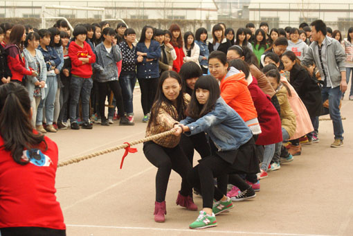 由秘书部、文宣部、体育部成员 的啦啦操为开场,比赛正式进行,有各班代表抽签决定参赛顺序。当比赛的哨声一响起,队员们口中一起高呼着“一二、一二”,双手紧紧握长绳,憋足了劲拼命往后拉,老师们也在旁边助阵加油,抓起绳子和学生一起努力!班内剩余的同学自发组成啦啦队为本班人员加油。号子声、呐喊声,此起彼伏,飘荡在整个操场上空。参加人员本着“友谊第一、比赛第二”的原则,整场比赛进行的井然有序,进过激烈的耐力、体力的较量,最终2013级护3获得第一名,2013级护1获得第二名,20123班获得第三名。