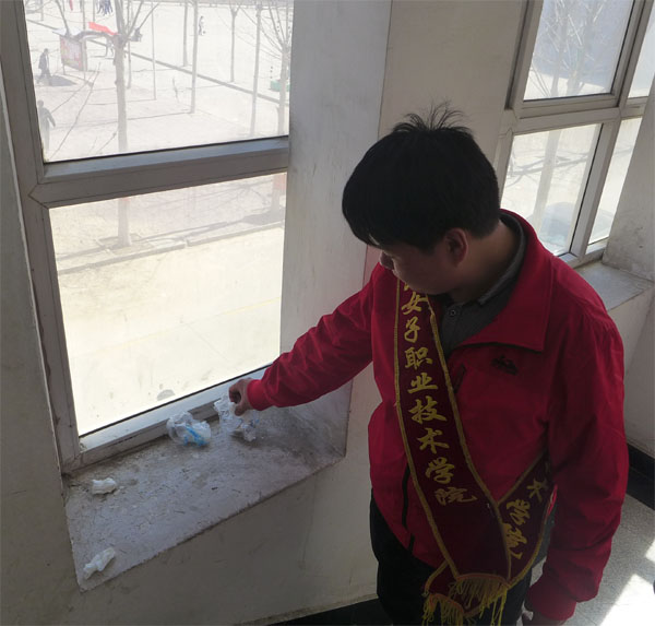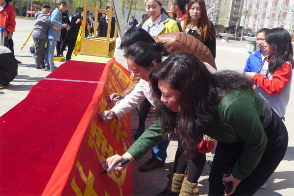 3月20日,我系在综合教学楼前小广场组织了倡议及签名活动。活动中,学生代表宣读了“应用技术系爱护环境倡议书”,向全校同学发出倡议,希望大家发扬主人翁的精神,爱护校园一草一木,维护好校园的环境卫生。广大师生纷纷在“细心呵护环境,共建美好校园”条幅上庄重地签上自己的名字,以表达对活动的支持和自己的决心。活动志愿者们,还利用课余时间清理了综合教学楼楼道和走廊的废弃物,为共建美好校园做出了自己的贡献。