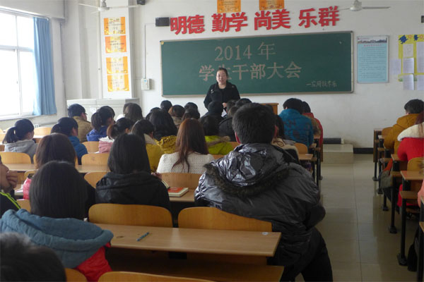 2月28日,应用技术系2014年学生干部大会在综合教学楼701教室召开。系团总支书记任雁老师,全体辅导员出席了会议;系团总支、学生会、团学博览全体成员参加了会议。