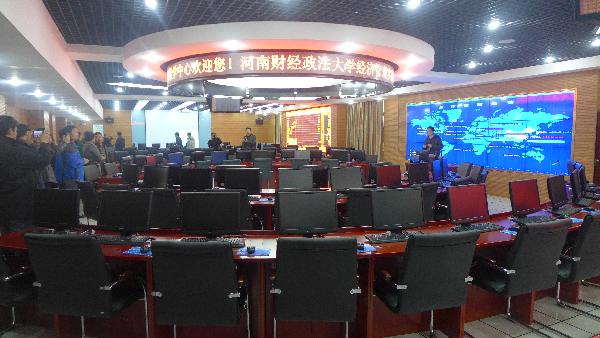 11日上午参观了河南财经政法大学实训中心,河南财经政法大学郭宏书记、经济管理实验教学中心王虹主任等领导对徐院长一行的到来表示热烈欢迎,各实训室的负责人分别对考察虚拟商业社会环境VBSE实训基地、财税实训室、金融实训室的建设做了详细介绍,并现场演示了金融实训室的上课效果。
