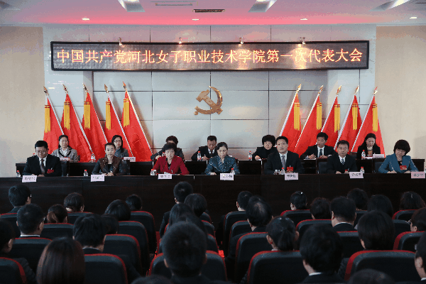 开幕式由学院院长盖春瑞同志主持。河北省妇联副主席王冬梅同志出席大会并致贺辞。学院党委书记窦新顺同志代表学院上一届委员会作报告。参加本次大会有代表102名、列席人员3名。在嘹亮的《国歌》声中,全体代表共同见证了这一学院历史上具有里程碑意义的时刻,为参加这一对学院改革发展和党的建设具有重要意义的会议而欢欣鼓舞。