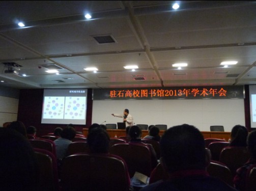 会议邀请了图书馆方面的专家作了三场精彩学术报告。一是北京超星集团副总裁、原成都理工大学图书馆馆长叶艳鸣教授的《大数据环境下的文献分析与利用》,一是中国人民大学图书馆副馆长刘春鸿教授的《大数据时代高校图书馆的建设与发展》、一是北京大学图书北京大学副馆长聂华教授的《技术趋势与下一代图书馆系统》。三位专家以各自高校图书馆、数据服务的实践,合理定位图书馆的功能和服务,倡导高校图书馆要以用户至上,做到内涵发展,随需应变,为读者打造一站式、自助式、个性化、人性化的服务。我馆馆长与来自省会各高校的图书馆负责人及行业学者170余名人士一起认真聆听了三位专家的讲座,共同探讨了大数据时代高校图书馆的发展。