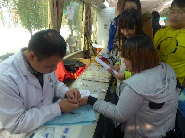 在一个天朗气清的日子里,习习的秋风带来阵阵的凉意。然而,清凉的风却没有降低女子学院同学们献血的热情。